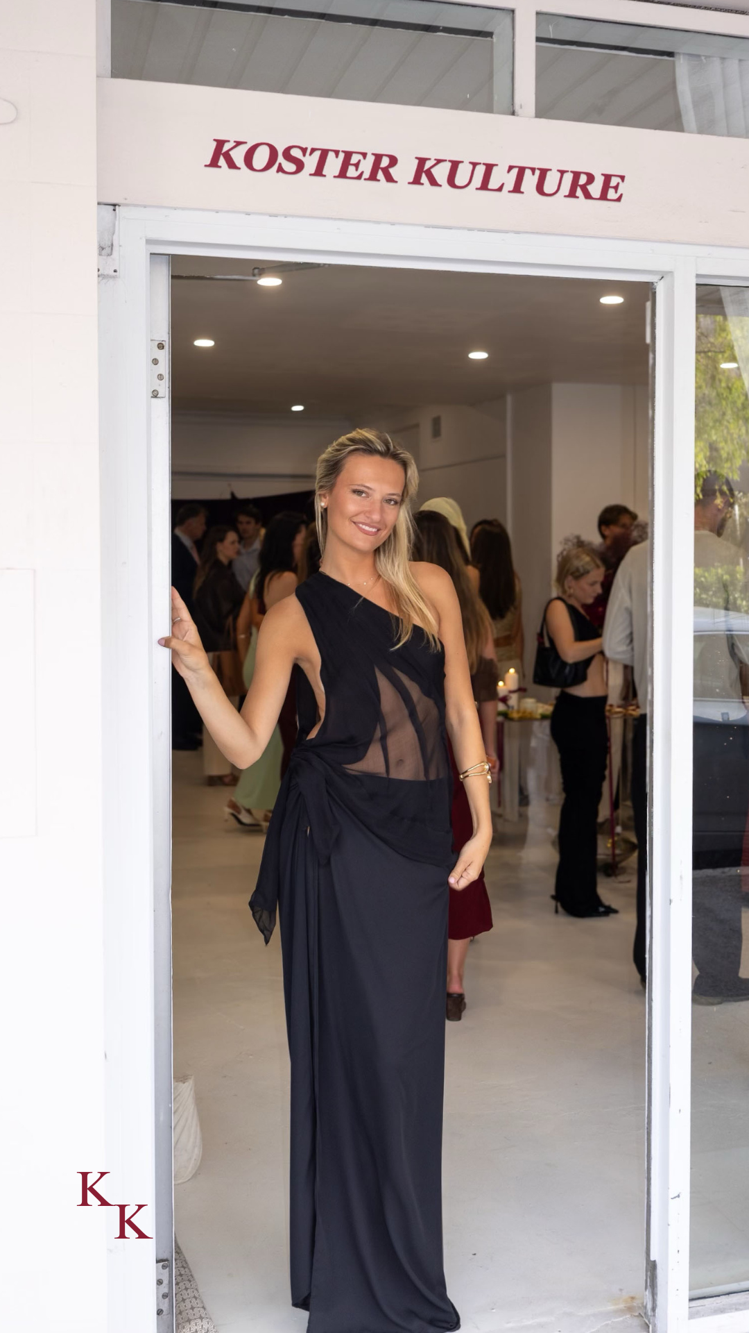 Introducing the Freya Top by Koster Kulture — a study in contrast, light, and movement. Crafted from a sheer black silk chiffon, the asymmetric silhouette features sculpted diagonal darts that create soft, fluid transparency across the body. The draped one-shoulder design falls loosely over the frame, revealing subtle glimpses of skin with every motion and finished with double lined bust sections for modest sensuality. Complimented by an elongated side tie. Freya is designed for layering or statement styling, embodying subtle allure— a piece that blurs the line between art and form.